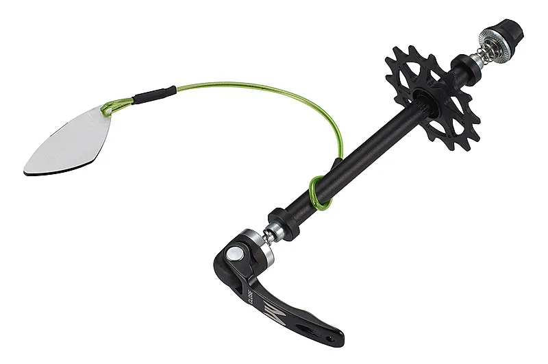 The Chain Keeper is inserted into the right rear dropout when the wheel is removed for cleaning, storing, or transporting bikes. A cherished item by pro mechanics that have to maintain a crowded team truck. Designed to maintain chain tension during cleaning. Quick release lever allows for fast installation and removal.