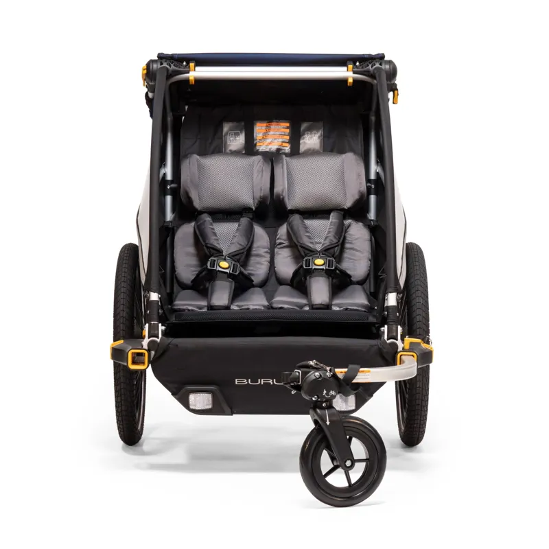 The trusted D’Lite kids bike trailer and double stroller is built for adventure, with a refined interior for superior comfort. The recline allows you to fine tune the angle of the seat with full-length UV windows for protected panoramic viewing. Premium seat pads, headrests, and adjustable suspension optimize comfort for a smooth ride. The included stroller kit adds versatility out of the box with optional conversions for sand and gravel riding, jogging, or skiing. Travel your world in style!