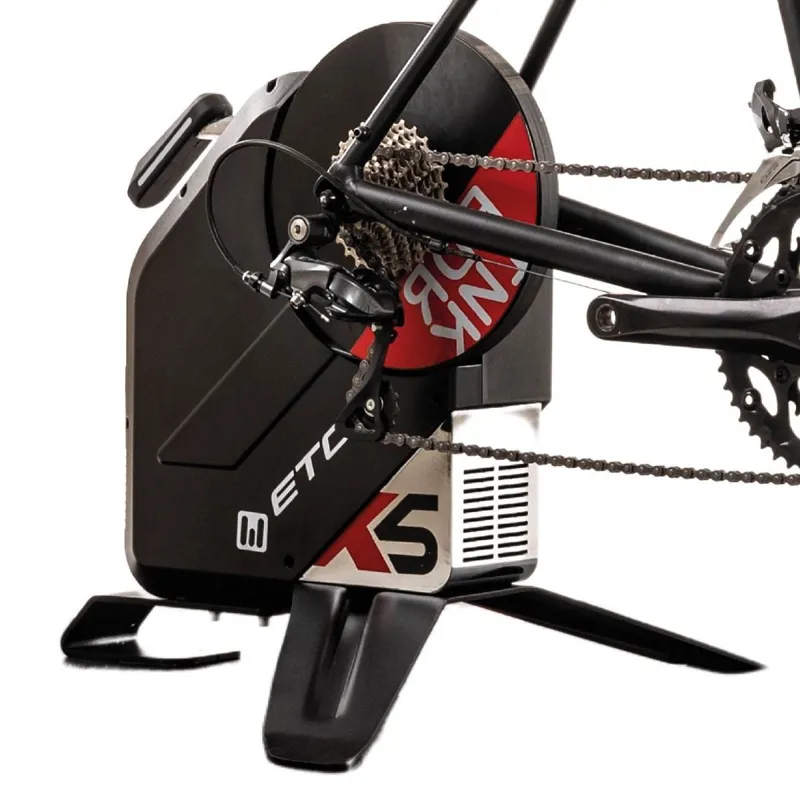 The ETC X5 Smart Trainer by Think Rider offers a full range of terrains by linking Wirelessly to a Training App of your choice. Portable and compact, the X5 delivers 2000 Watts and a 20% Maximum gradient with just 62db of Electromagnetic resistance. IOS/Android/Windows compatible, with ‘+/- 2% accuracy, Automatic temperature compensation and Spindown Calibration ensure you get the most out of your workout.