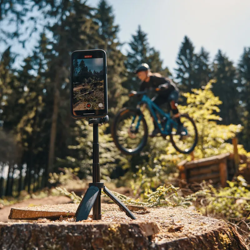Hitting the trails with your bike, at home sitting at the desk, or on holiday during a city trip: the VACUUM mini tripod base with the small, mobile tripod is the perfect extension of the universal VACUUM family. The portable tripod folds up small and can easily be stowed away in a backpack when on the go. It can also be used as a selfie stick. At home, the holder is a great help when working at the desk or cooking.