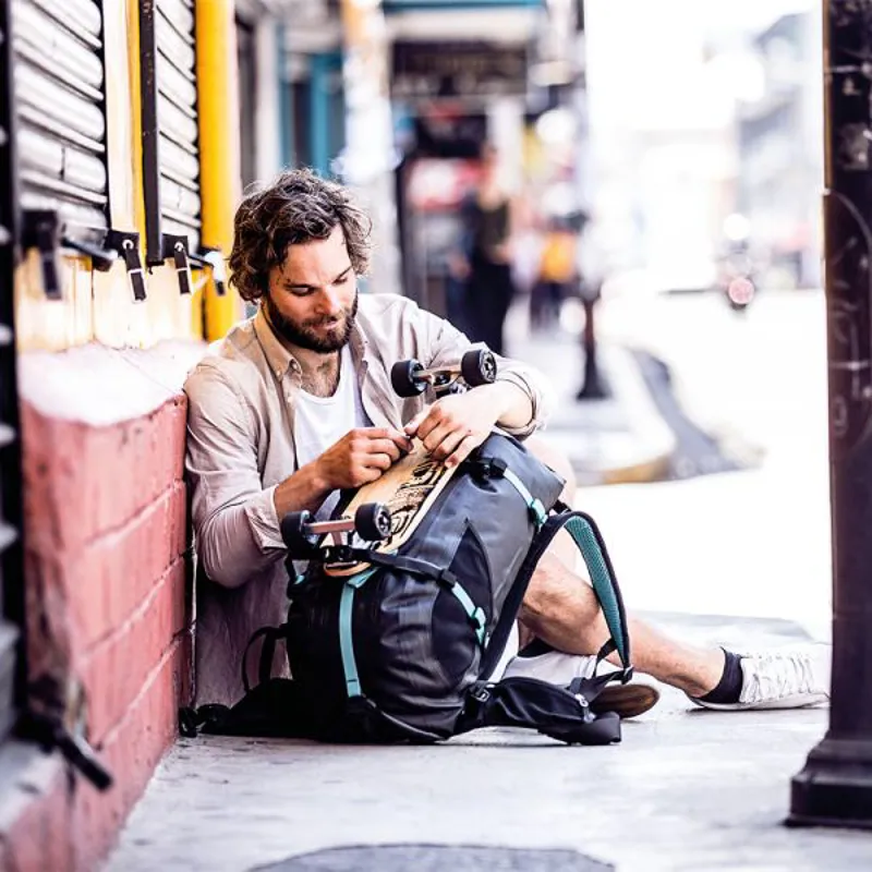 Comprised of various attachment elements, this set allows you to conveniently and securely attach your sports gear to your backpack – and to do it in a way that prevents rattling and shifting. All of the attachment elements can be connected to your backpack’s daisy chains or the tension straps. Skiers have the option of an A-frame or diagonal configuration.