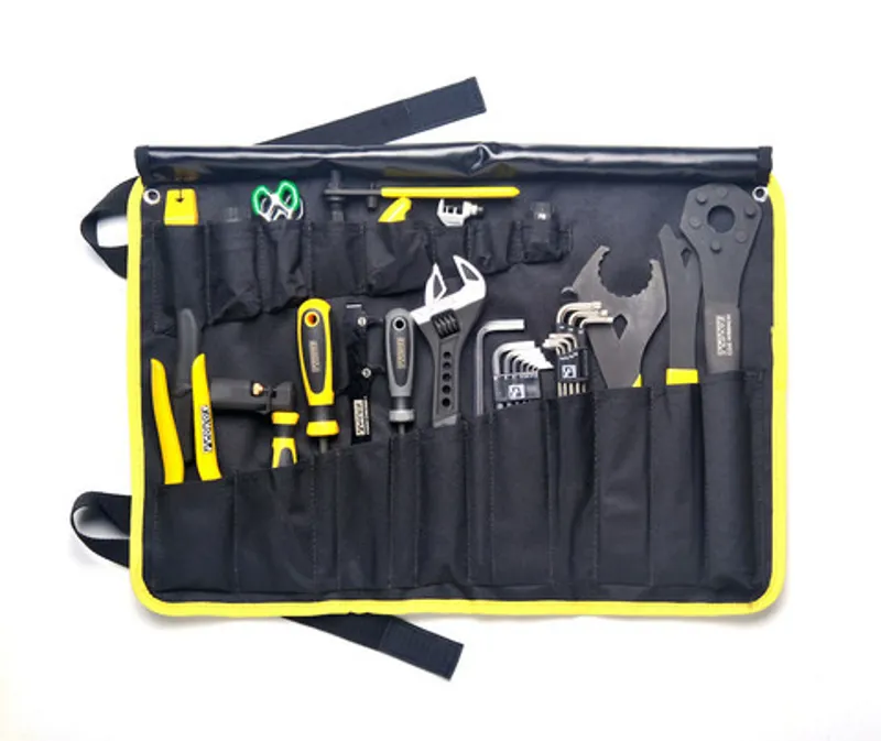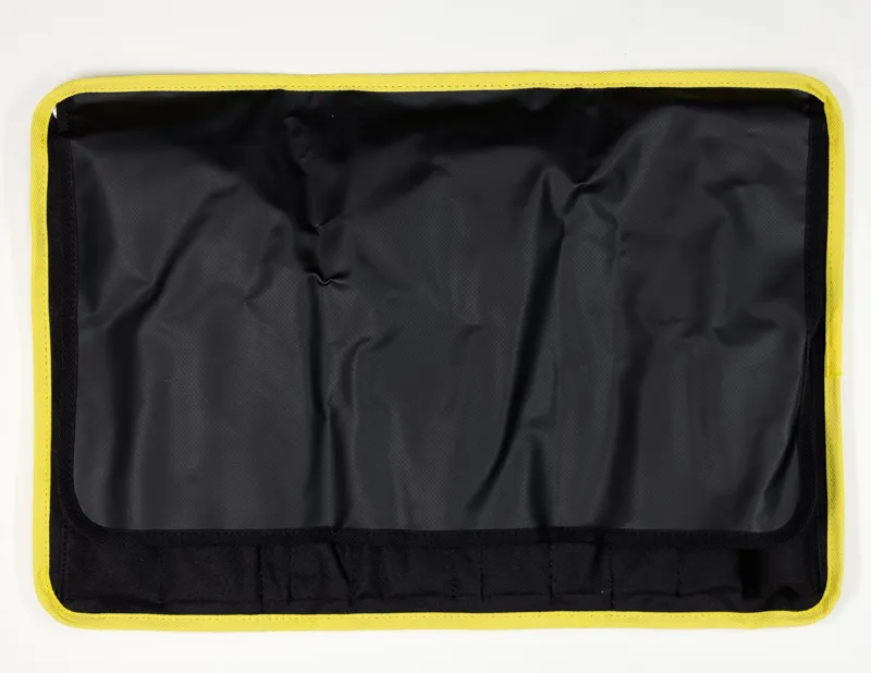 Hungry to get your tools organized, protected, and ready for action? Then chow down on the Pedro's Burrito Tool Wrap. Designed in conjunction with our Starter Tool Kit, this wrap is designed for versatility and convenience. Twenty pockets offer ample space for all your tools. Unroll flat on a bench or hang by the integrated grommets and find your tools displayed over the roomy 21" x 15" surface. When it’s time to pack up, the waterproof exterior and internal flap keep you tools protected and velcro straps keep everything in check. Still hungry? Your favourite Pedro's floor pump fits perfectly in the Burrito straps.