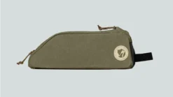 Two-way zippered top tube bag with a large opening for easy access to biking essentials. Semi-soft design with a reinforced base that attaches with Velcro straps or screws to the top of the frame. The pack is made from durable Vinylon with a recycled nylon lining and foam-padded sides. Inside mesh pockets keep track of your smaller items. Seams are not taped, but the lining fabric is waterproof. Part of the Specialized/Fjällräven series for urban rides and bikepacking adventures.