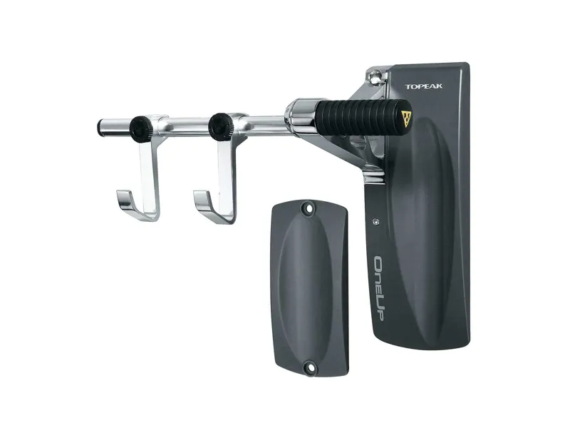 A molded rubber bar keeps the front wheel stationary preventing the bike from twisting. Includes all mounting hardware plus a molded rear wheel pad to prevent tire marks on the wall.